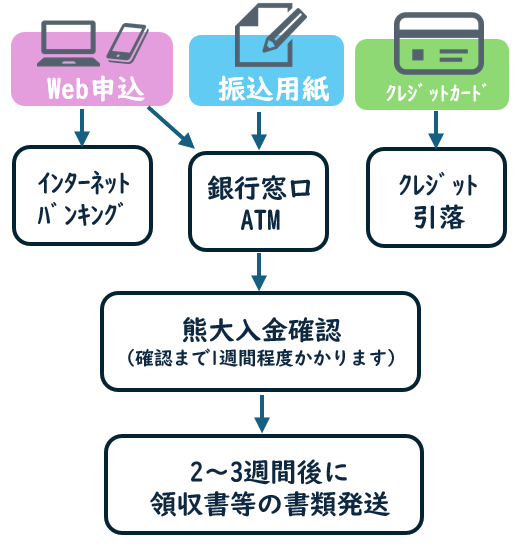 ※クレジットカード会社を経由するため、大学への入金は約1~1.5ヶ月後となります。