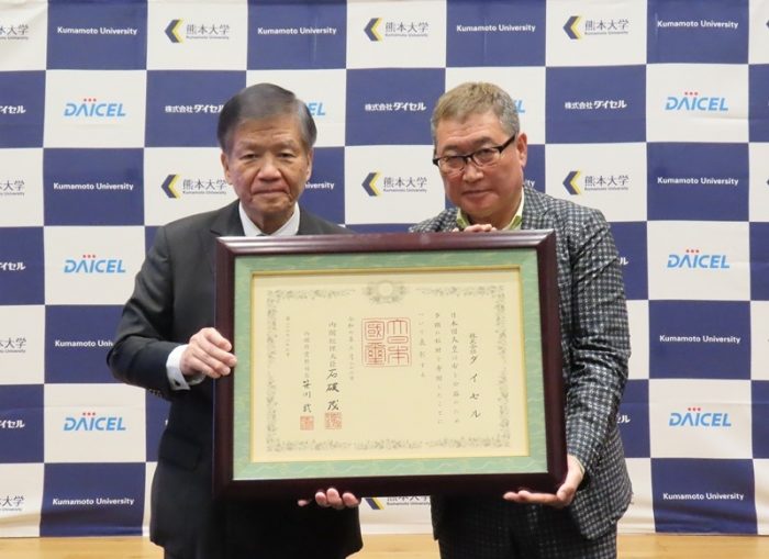 1列目左から、熊本大学小川学長、株式会社ダイセル小河取締役会長、